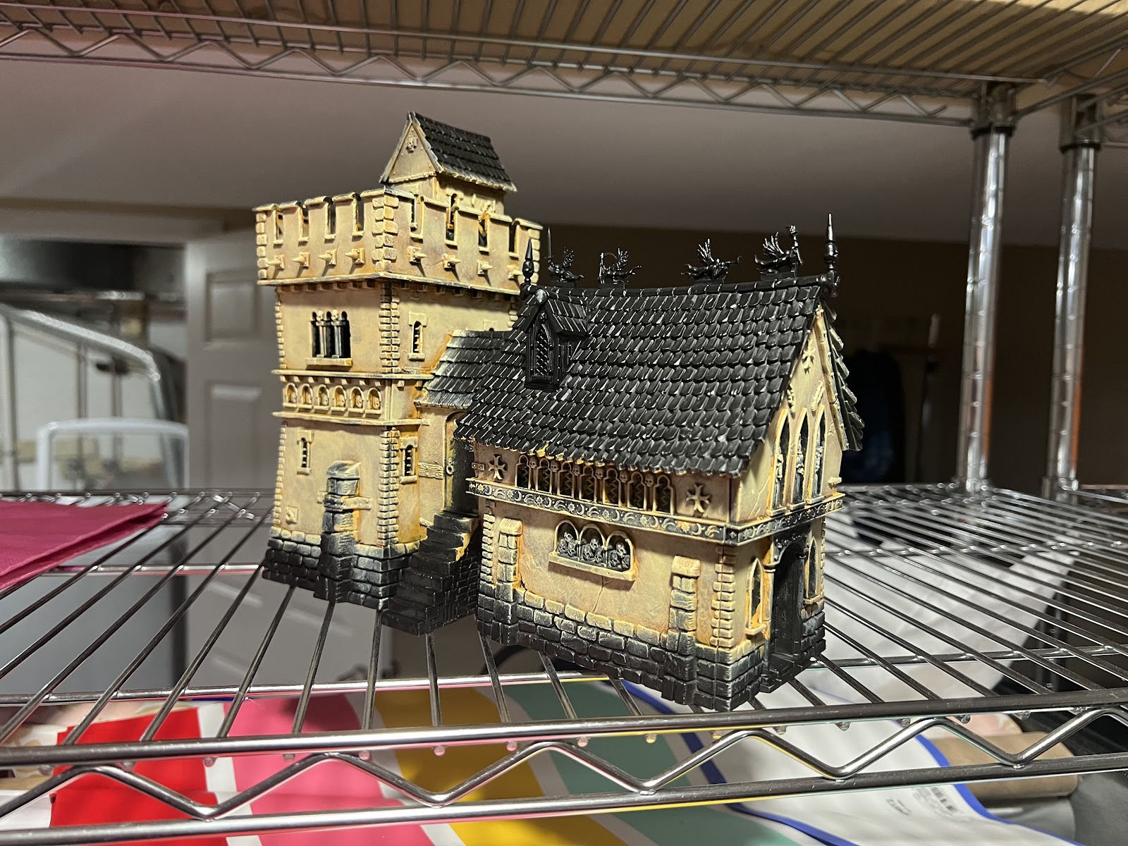 For painting, I used this excellent guide from a 10-year-old blog, Jester Painting Studio. I don’t know what has happened to Jester in the past ten years, but his guide was indispensable for me in painting my own manor, particularly dealing with the stucco. I have never painted stucco, so I am glad I had this guide to go off of. While the building isn’t my best work, I am pleased with how the walls turned out.