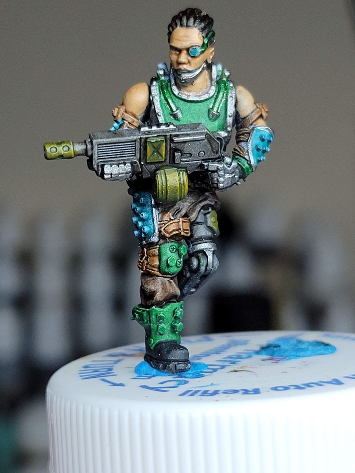 I continued to work on the cyborg hive scum from last month. I had mentioned that I wasn’t fully pleased with my return to contrast paints. I decided to mix and match for my 3rd scummer.